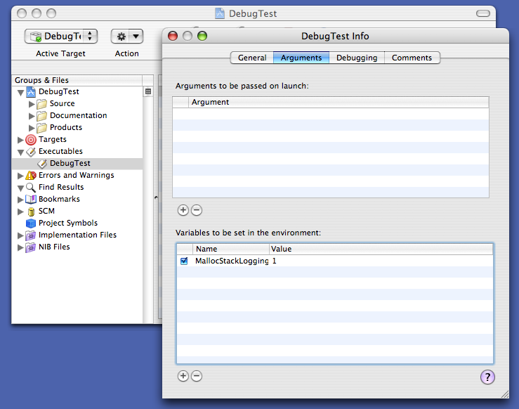 In many cases you can enable a debugging facility by setting a particular environment variable. You can do this using the executable inspector in Xcode. Figure 1 shows an example of this.