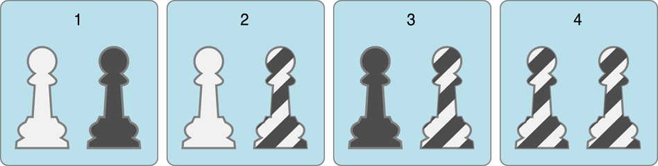 A chess match always requires two players, so with these masks there are four possible combinations of players that can satisfy the condition for a completed mask: