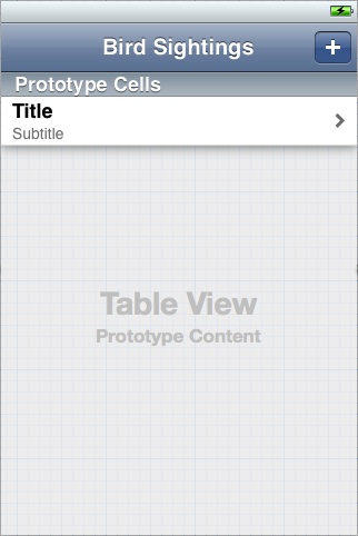 • Dynamic prototypes. Design a prototype cell and then use it as the template for other cells in the table. Use a dynamic prototype when multiple cells in a table should use the same layout to display information. Dynamic content is managed by the table view data source (the table view controller) at runtime, with an arbitrary number of cells. Figure 4-3 shows a plain table view with a one prototype cell.