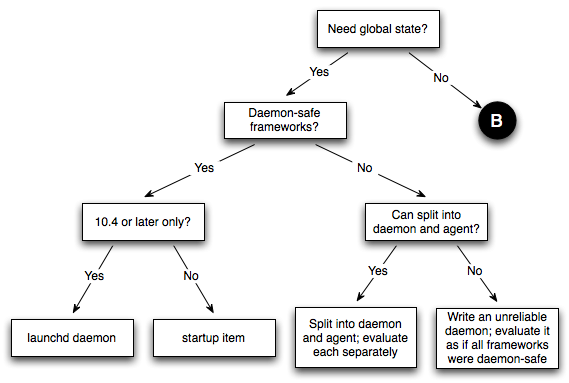 This technote describes the most common problems encountered when developing daemons and agents on Mac OS X, and offers detailed advice on solving those problems.
