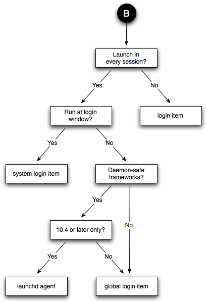 header file in the LaunchServices subframework of the CoreServices framework). This API is available on Mac OS X 10.5 and later. On earlier systems, you can install a login item is by sending Apple events to the System Events