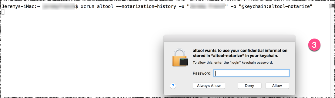 xcrun to invoke the altool command with the notarize-app flag:In Terminal: