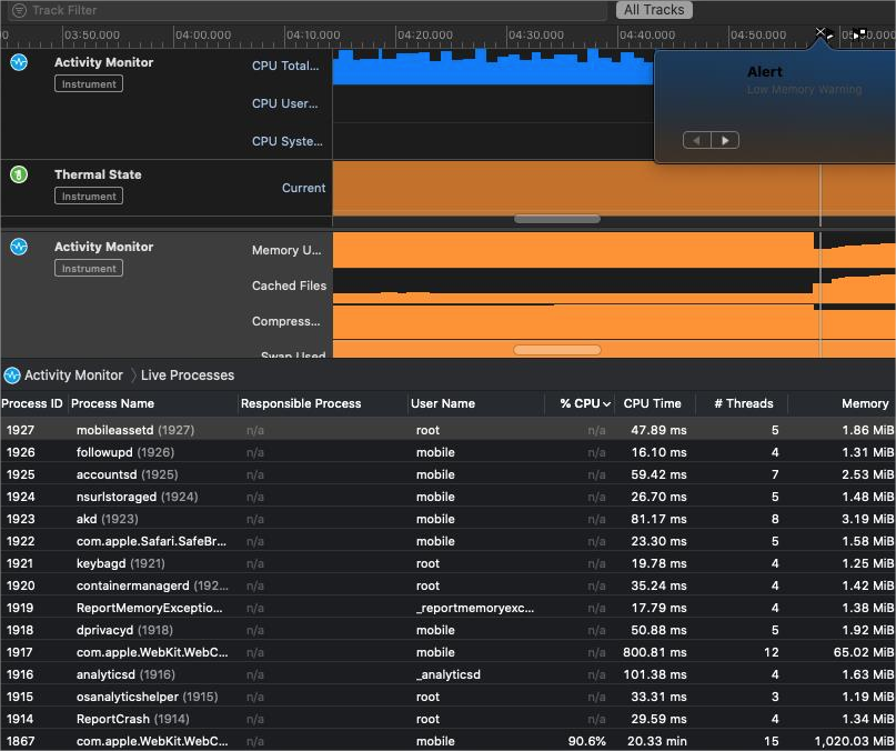 here is the screenshot of instrumenting that iphone