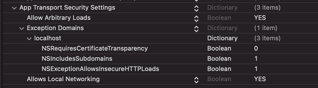 Note that I do have my local cert configured w/ my simulator and certificate trust settings enabled.