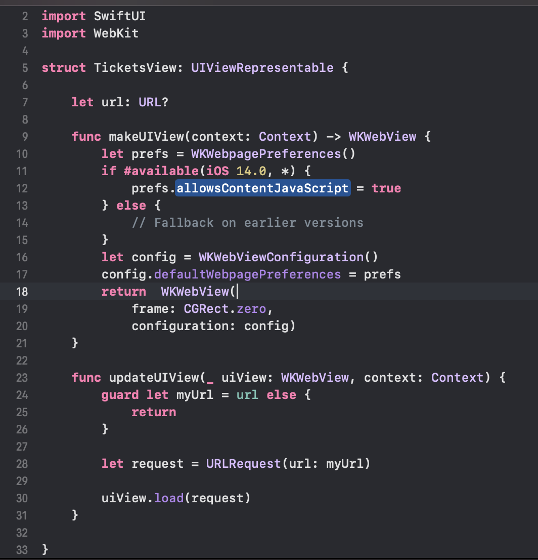 I am implementing a Webview on my SwiftUI app. I am relatively new to iOS Development.