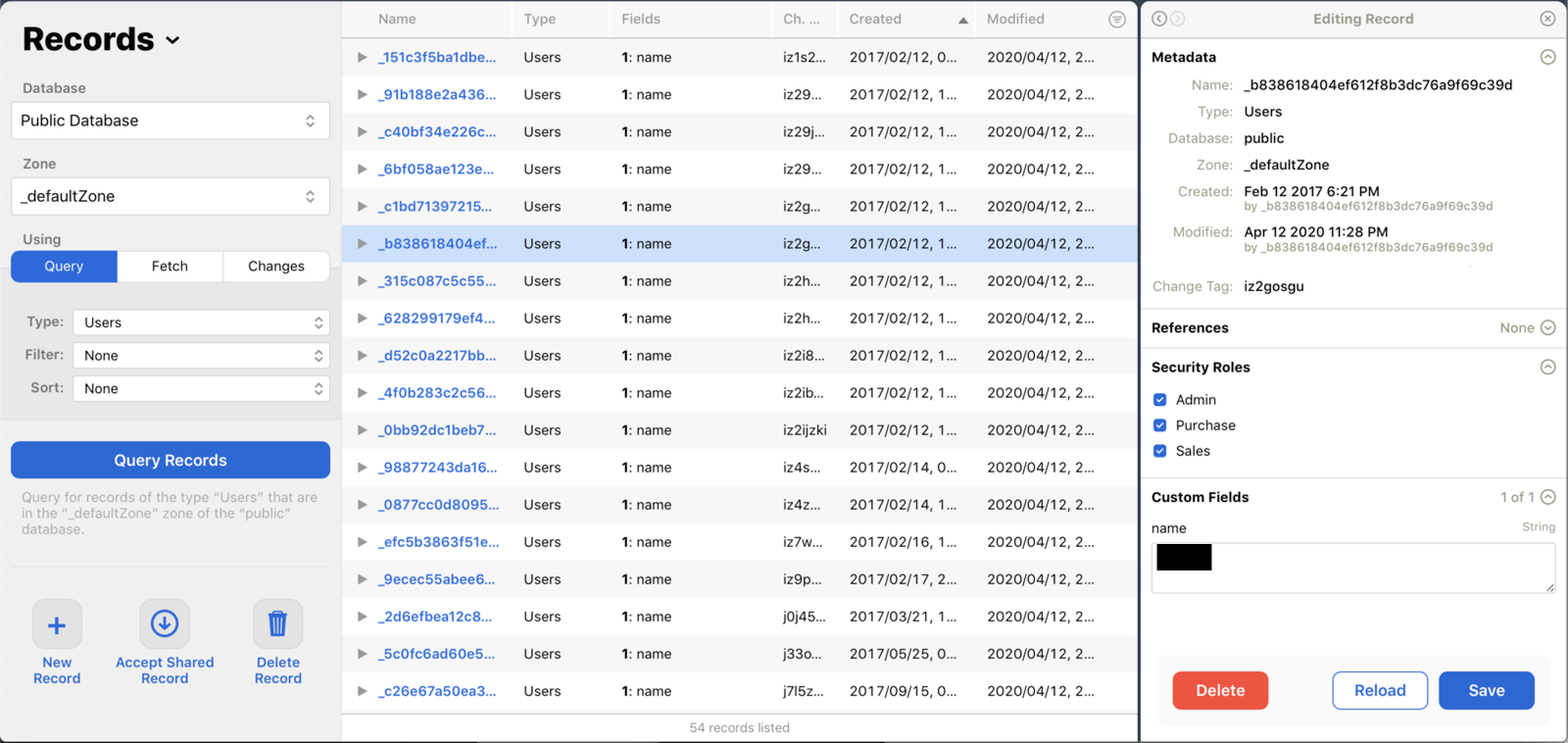 The old Cloudkit dashboard has been able to change roles in "Editing Record" pane.