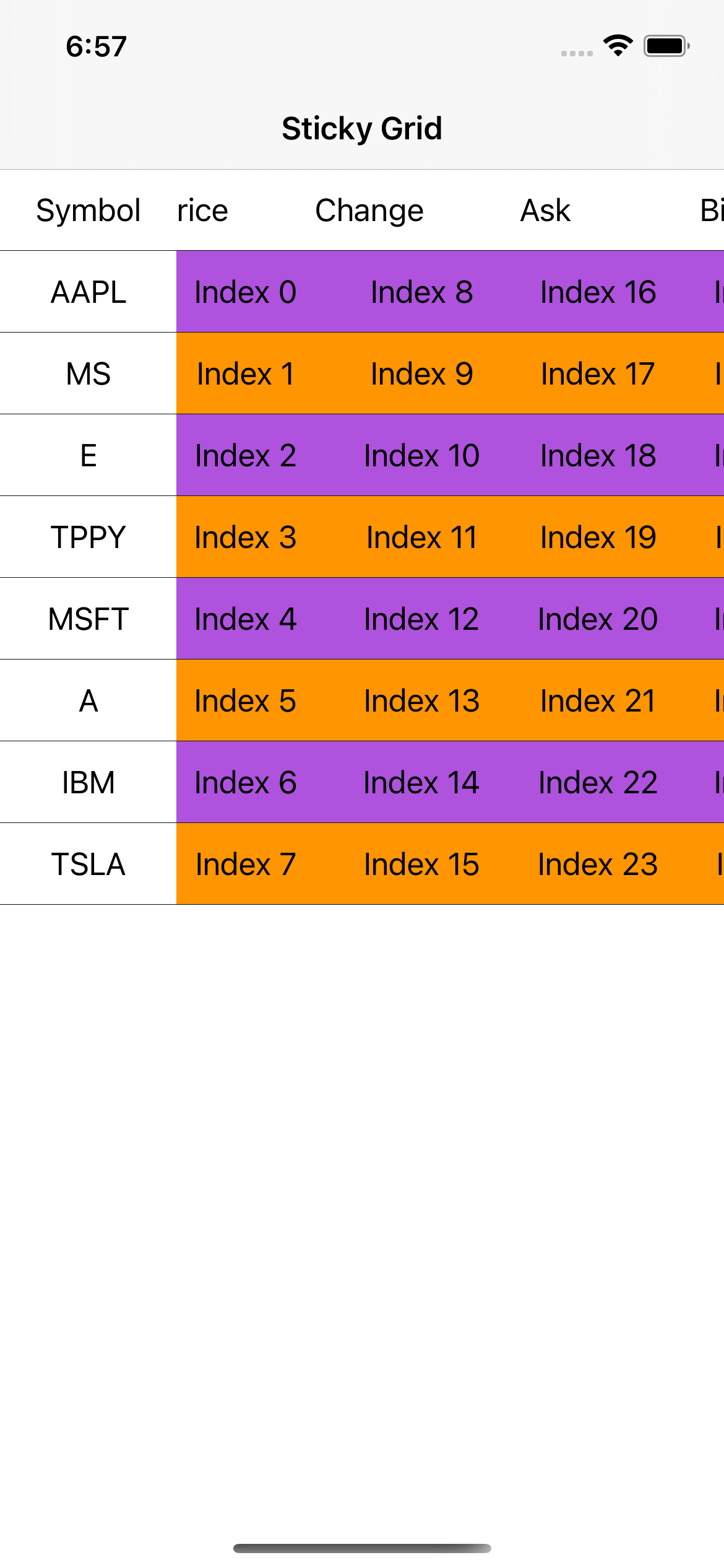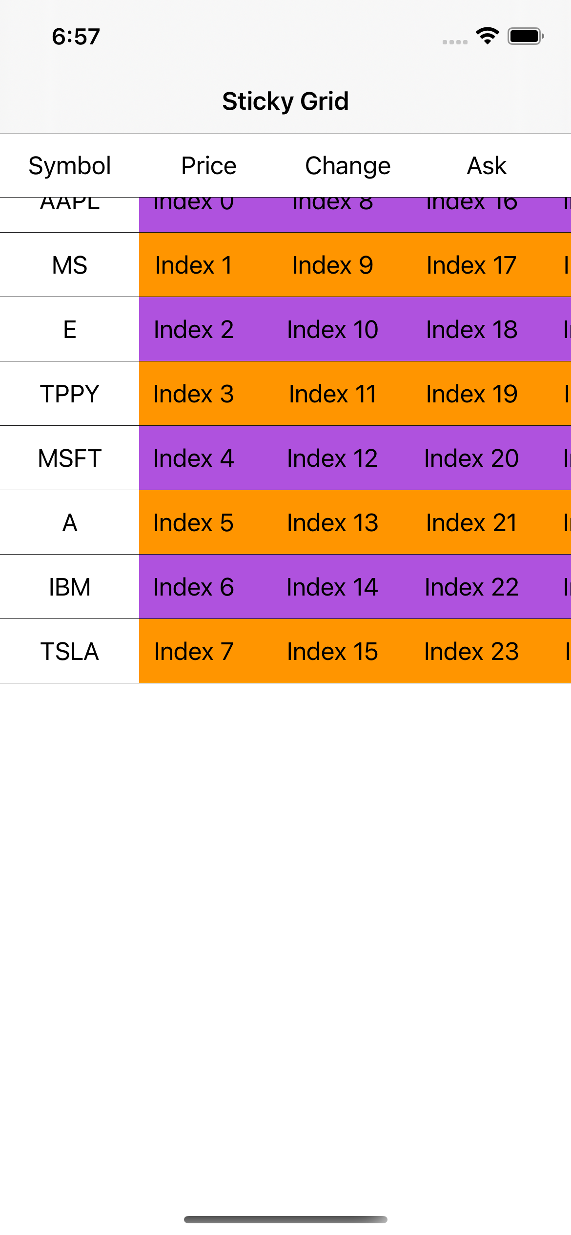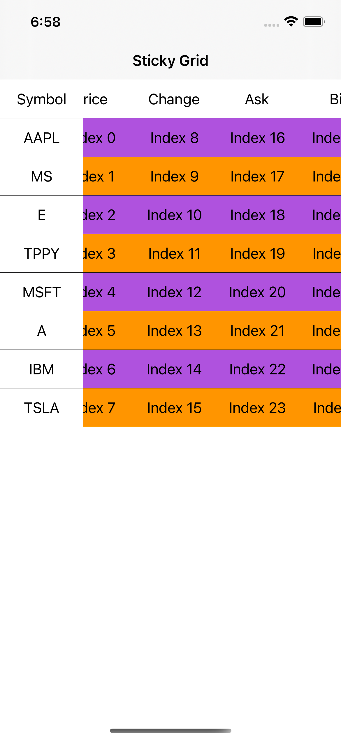 I am trying to build a grid where the first column is static yet the first row is a pinned header (it scrolls horizontally except the top left item) and the grid below it also scrolls horizontally. The entire first row must be pinned though as the user scrolls. To accomplish this, I had to use two different scroll views yet I want the scroll views to scroll together identically. The 3 screenshots below should do a good job demonstrating what I am trying to accomplish. I don't think explicitly controlling the scroll view offset is possible yet in SwiftUI, or is there a way around this?