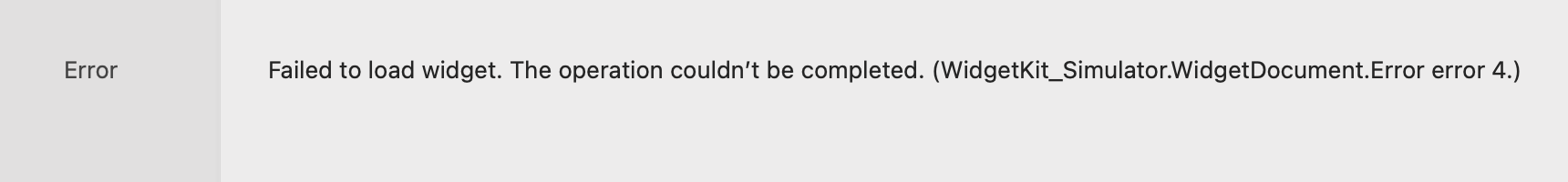 Following error thrown on xcode widget simulator