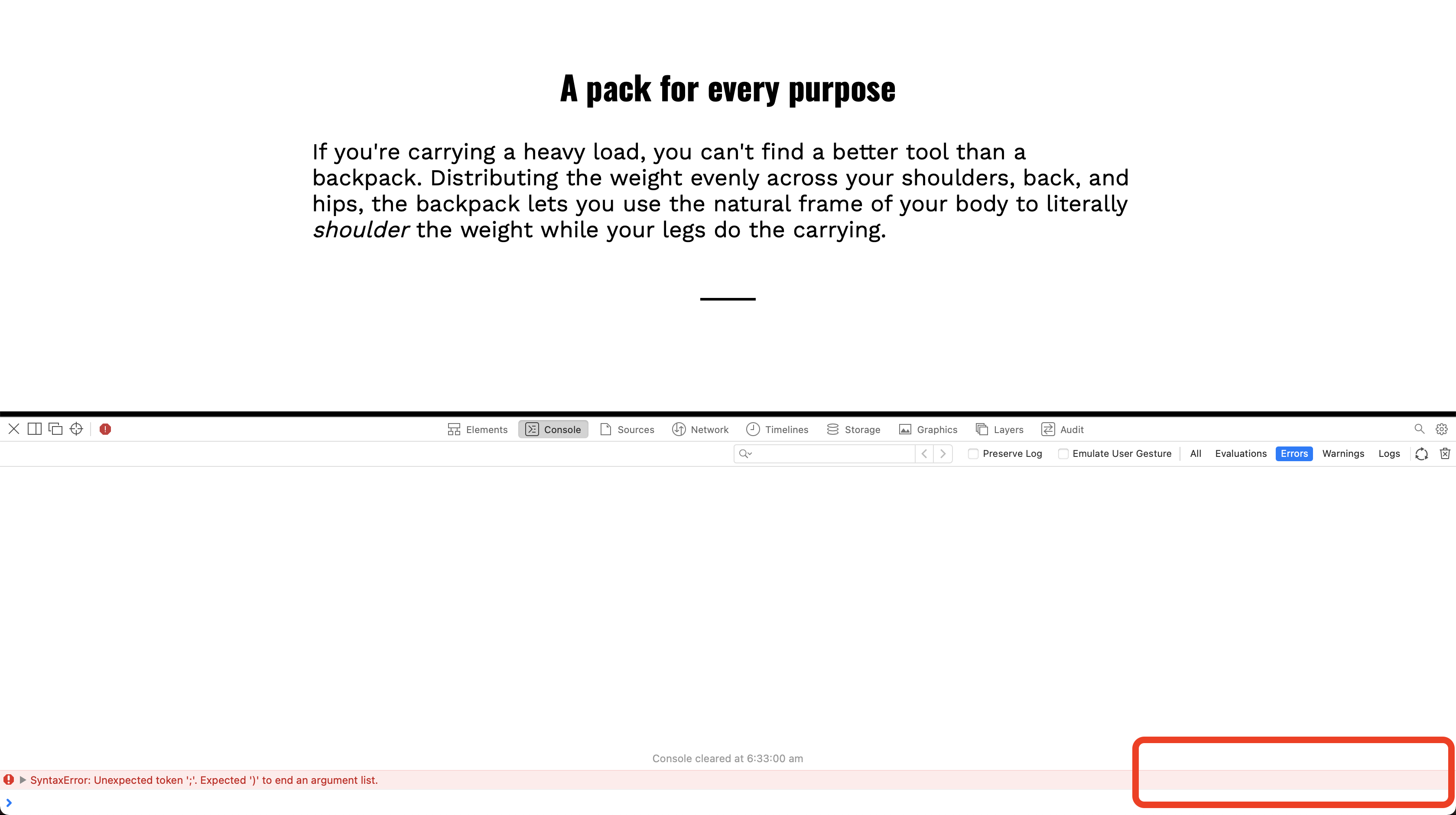 Chrome tells me the lines where I have errors. How can I see this information in Safari?