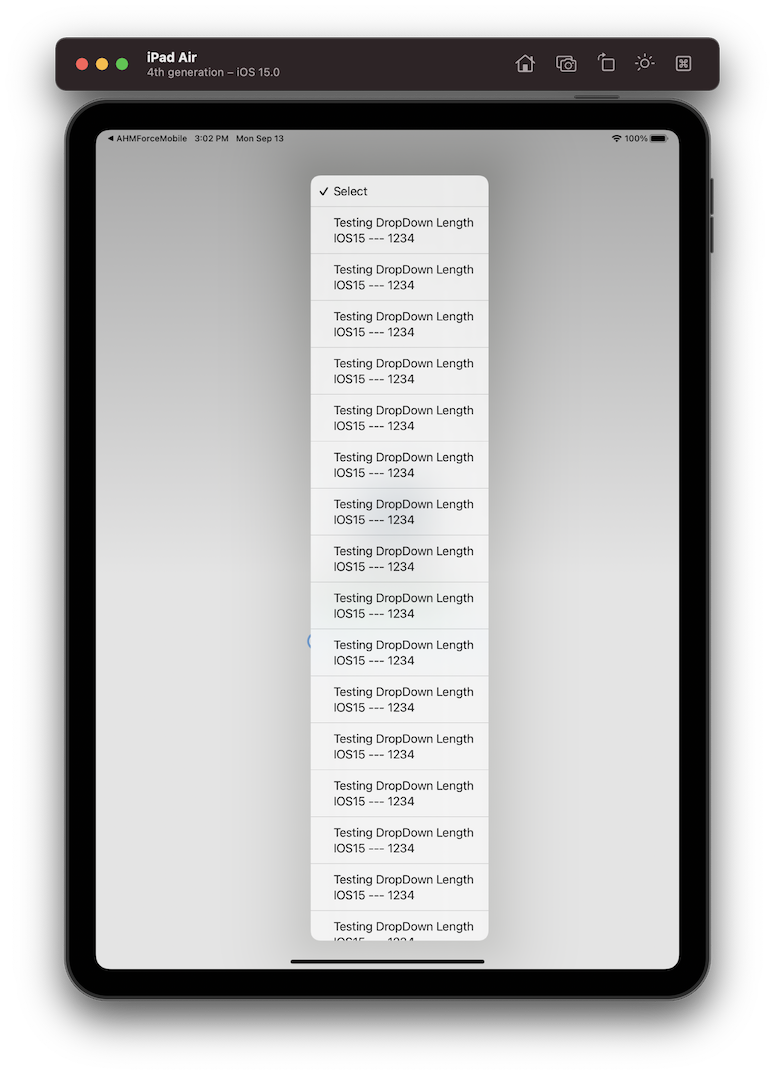 I have attached screenshots of a Cordova Sample App which shows the dropdown behaviour on both iPadOS14 and iPadOS15 (beta) devices.