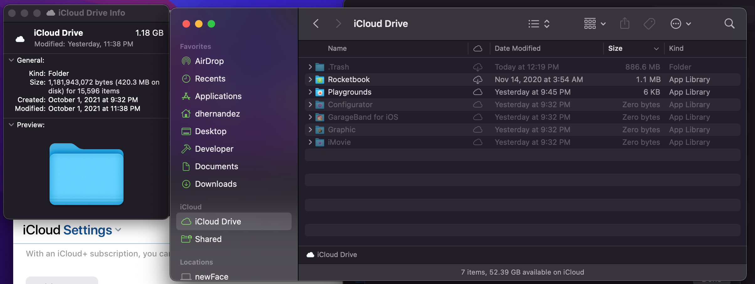 I have recently started work on a bunch of Swift Libraries and I've noticed an odd behavior on my iOS/macOS devices, I get "iCloud storage is full" error. However, last week I have ~40gb free. This week I'm 22gb over my limit. The actual sum of all the items in my iCloud Drive, ~25gb.