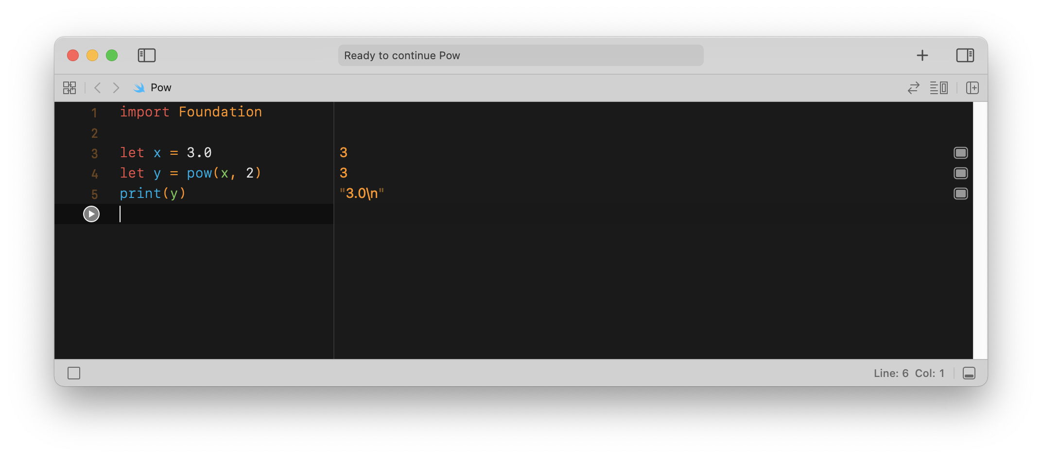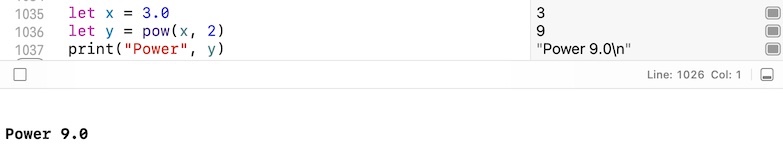 When I run an Xcode playground and use the pow() function, it's ignoring the exponent and returning only the base. If I run this code in a swift playground on an iPad or execute it in the REPL, I get the expected result (9). But in Xcode, it just fails.