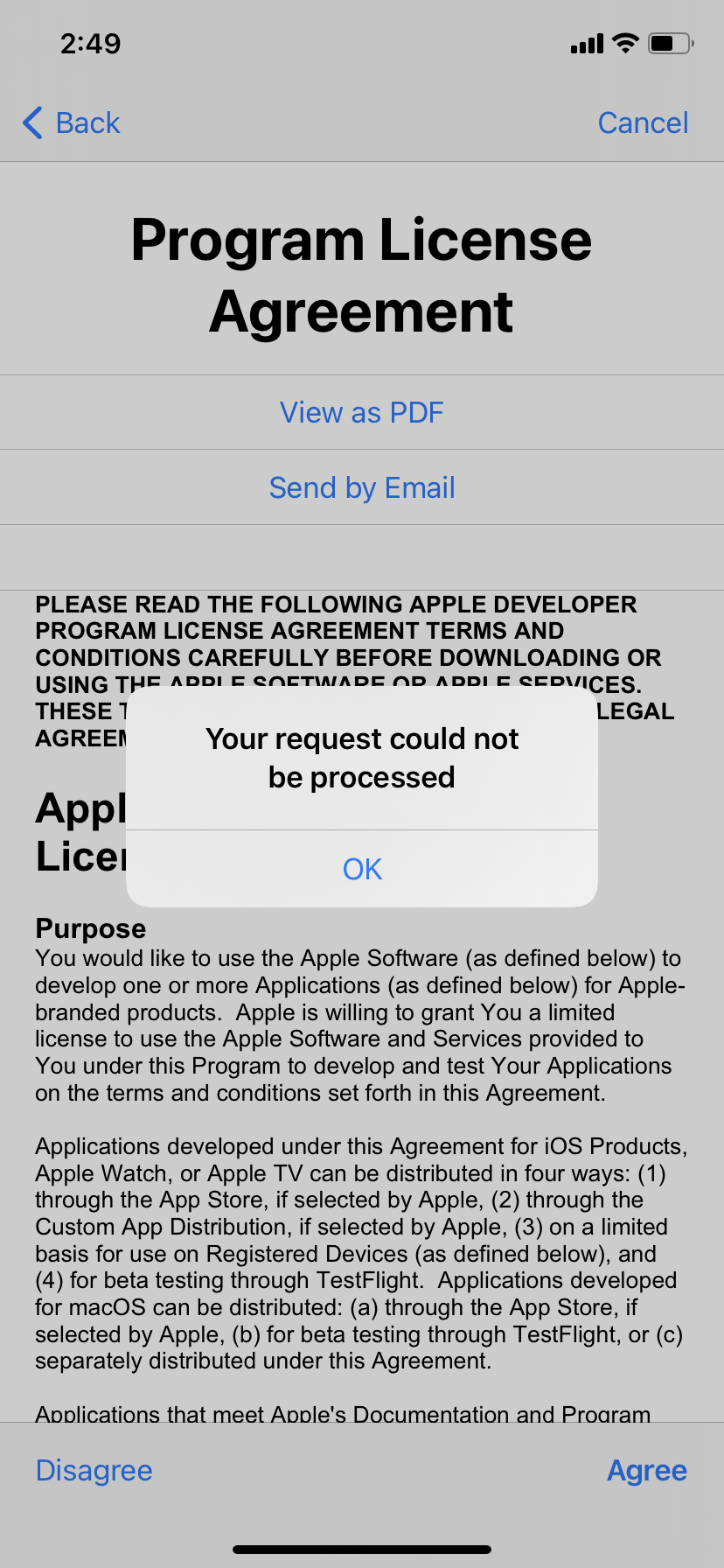 I never registered before, but the Developer App keeps telling me "Your request could not be processed". What should i do ?