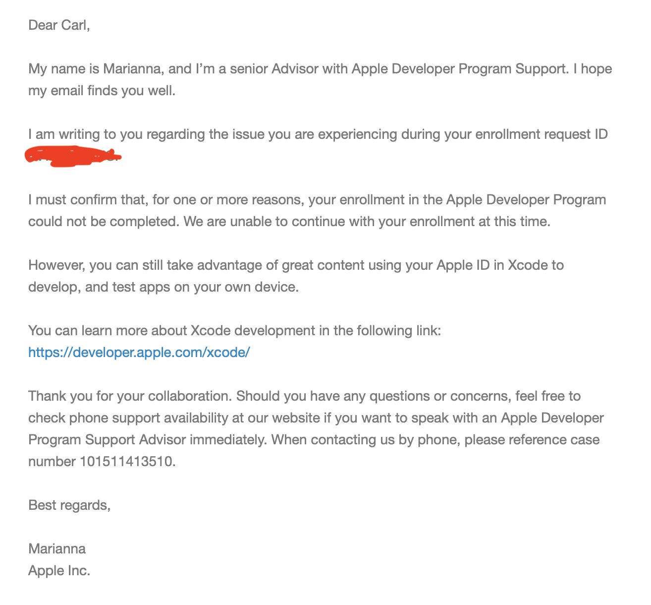 I've been trying for weeks to enroll into the Apple developer program as an individual. I'm over 18, added both credit card information and shipping information to my appleid.