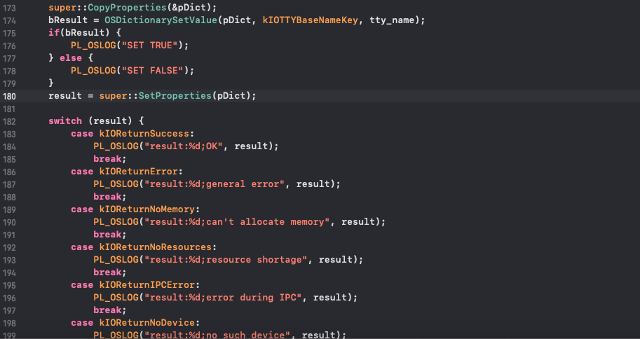 I want know how to set IOTTYBaseName in USBSerialDriverKit.We try to use SetProperties method inherit from IOService, but the method return -301 error code.
