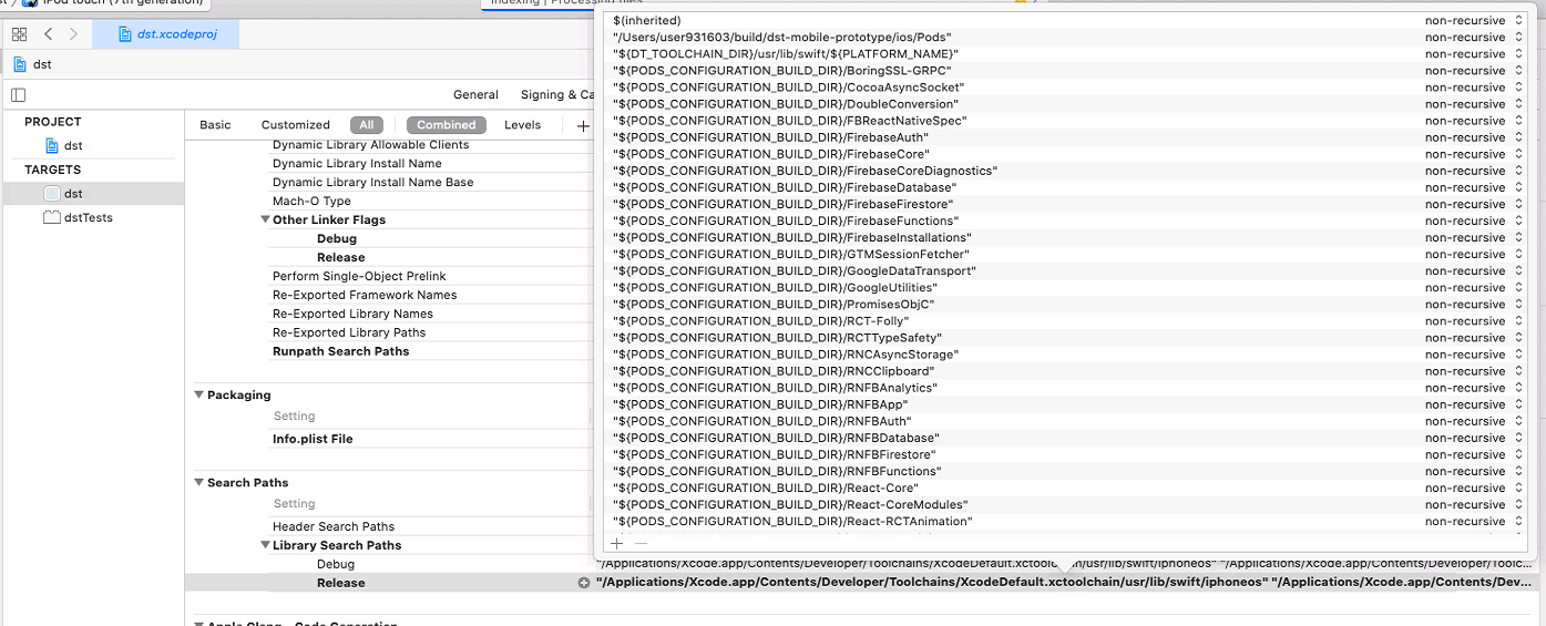 ld: warning: directory not found for option '-L-L/Users/user931603/Library/Developer/Xcode/DerivedData/dst-gisgtbcaheaxrqbgvvzueprfinbl/Build/Intermediates.noindex/ArchiveIntermediates/dst/BuildProductsPath/Release-iphoneos/BoringSSL-GRPC'