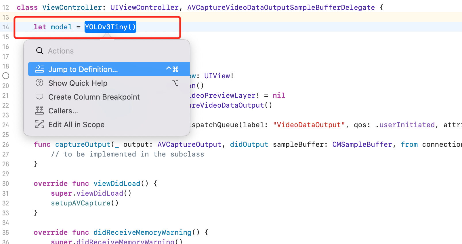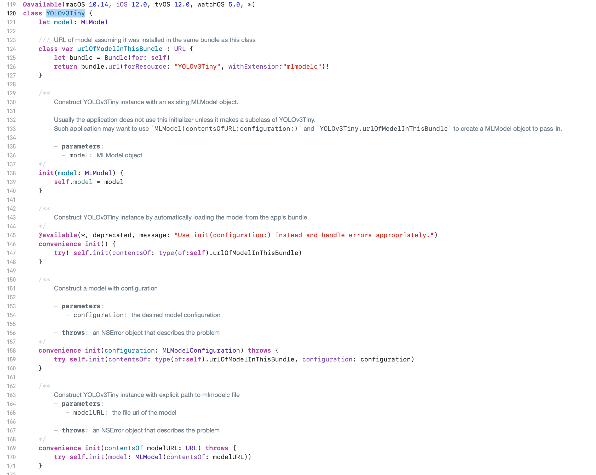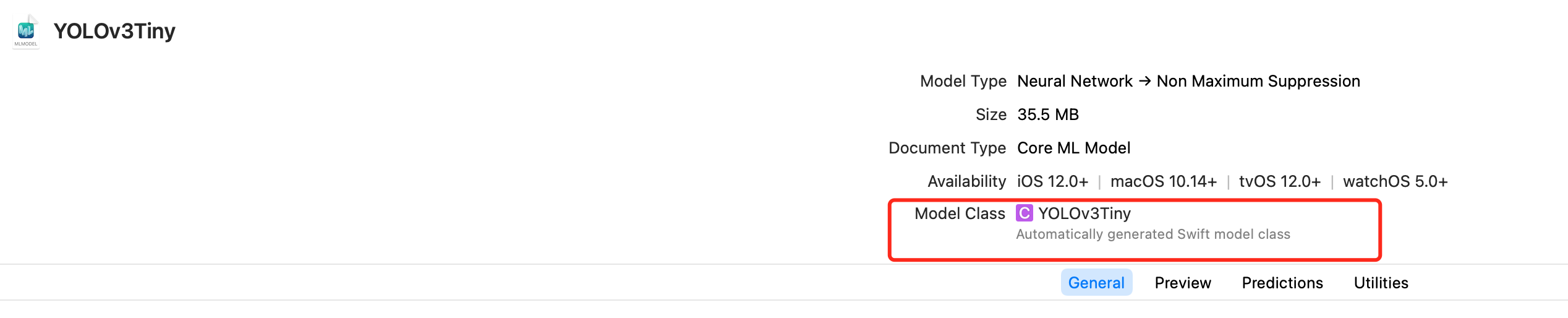but now i cant view mlmodel code,i can only use “let model = YOLOv3Tiny()” in swift and command it to view.