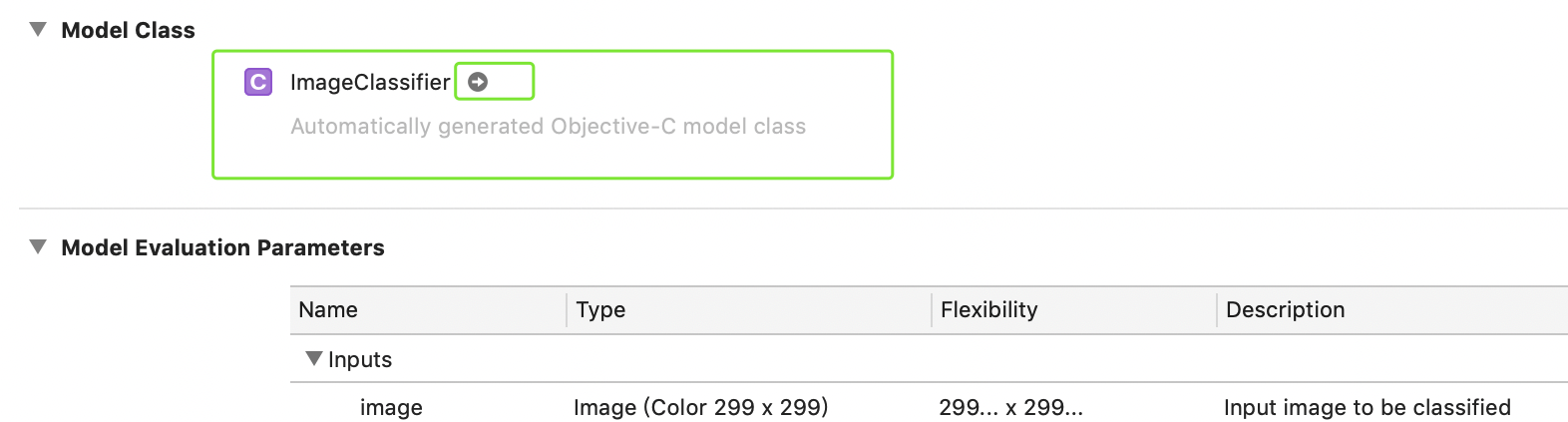 I'm a beginner,I learn coreml A few months ago,I remember double click this model class(Red box in the Figure 1)or click arrow (Green box in the Figure 2)can view mlmodel code like this Figure 3