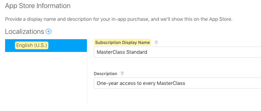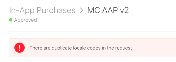 I can't change or update the name of an autorenewable subscription product that has been around in our app store for a while, and is current approved/available for sale. I am receiving an error "There are duplicate locale codes in the request". I am trying to update the subscription display name.