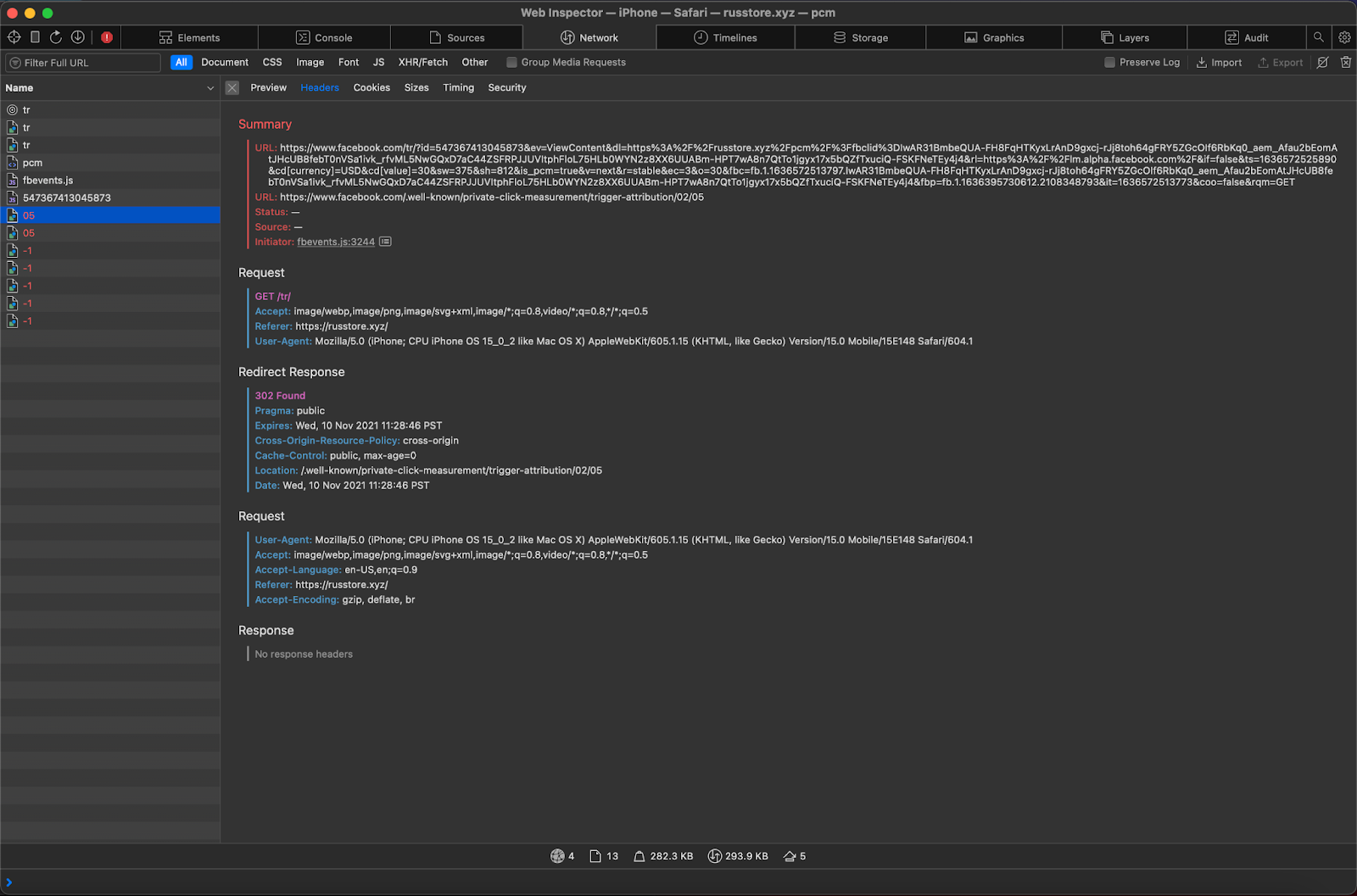 Using Safari Technology Preview, we can observe the network requests from Mobile Safari. To test PCM, we turned on “Private Click Measurement Debug Mode” and opened a test Ad on the mobile device. We then triggered a conversion, and observed the output in the network/console tabs. Here is the output on the network tab: