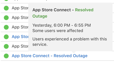 e.g. it shows this "Resolved Outage" yesterday, for App Store Connect