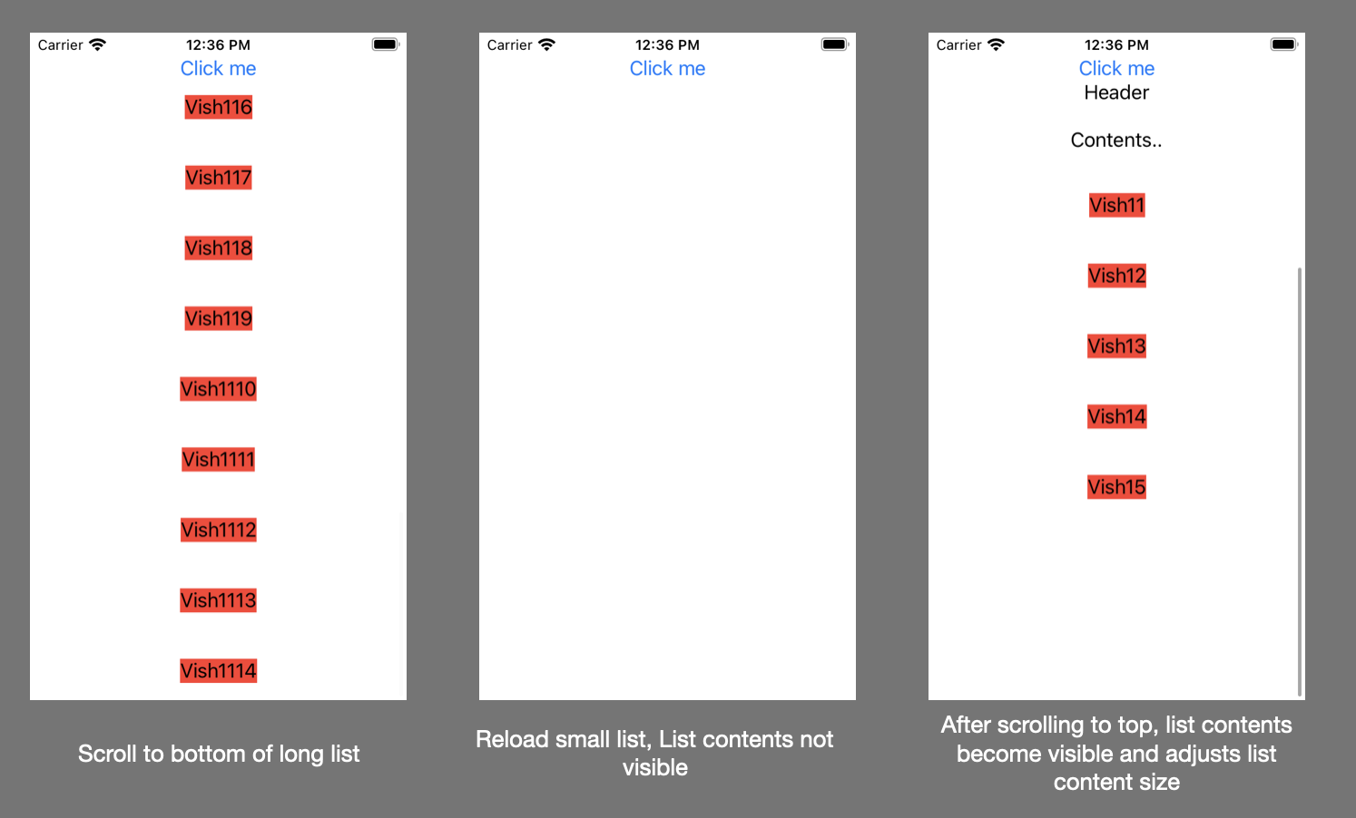 - Now scroll to top and then it shows small list and adjusts list content size