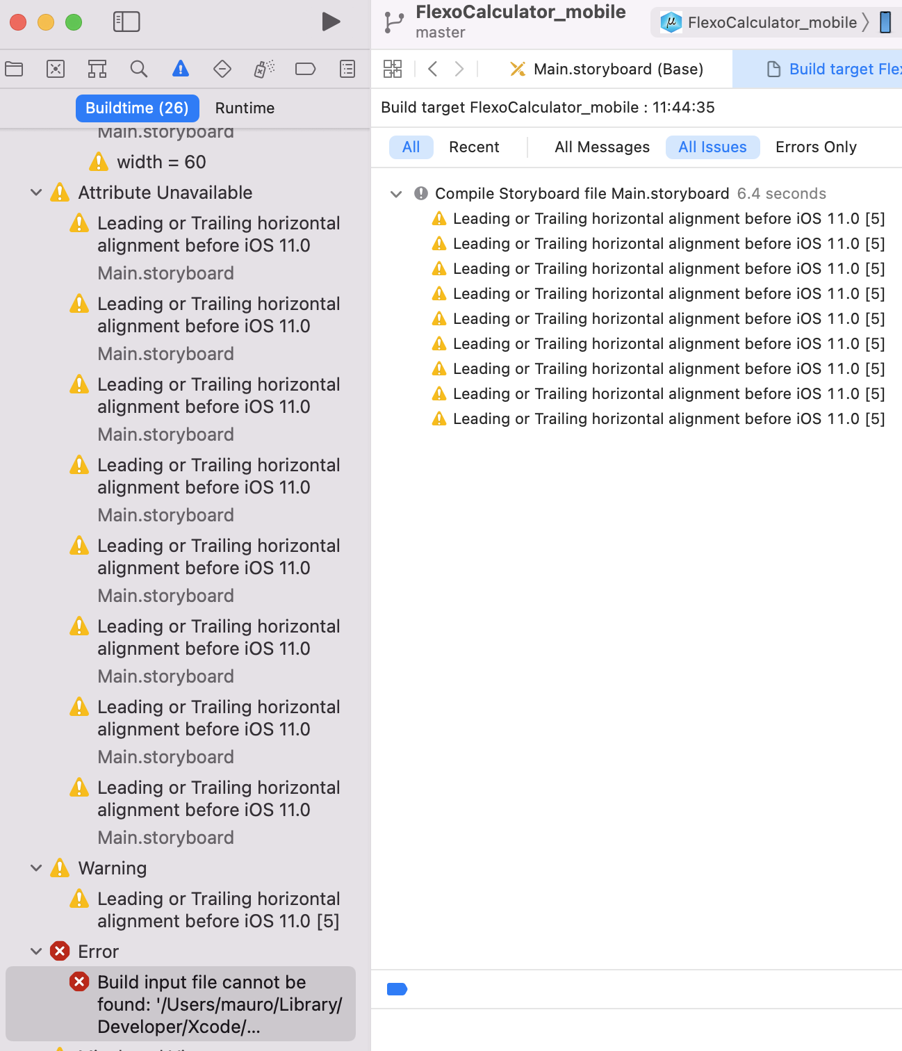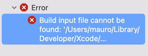 Build input file cannot be found: '/Users/mauro/Library/Developer/Xcode/DerivedData/FlexoCalculator_mobile-acfisshphqrnvoennhvdkcvtplhc/Build/Intermediates.noindex/ArchiveIntermediates/FlexoCalculator_mobile/InstallationBuildProductsLocation/Applications/FlexoCalculator_mobile.app/FlexoCalculator_mobile'