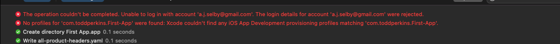 From the log, you have a problem to connect to your account. Have you a free developer license ?
