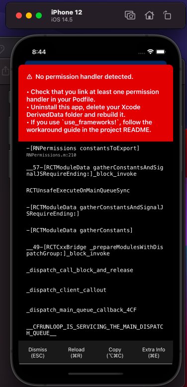 Good day. I am currently experiencing issues gaining access to the iOS Media-Library to save files. In my react-native app I use the RNPermissions (react-native-permissions) library to set up permissions. I have followed all the steps from the documentation but had no success.