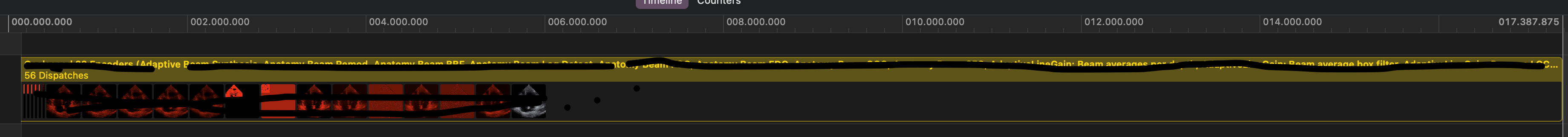 According to the timeline, it took 17.57ms. There is inconsistency. I did same test multiple times, and sometimes process time on timeline is less than GPU time, or vise versa.