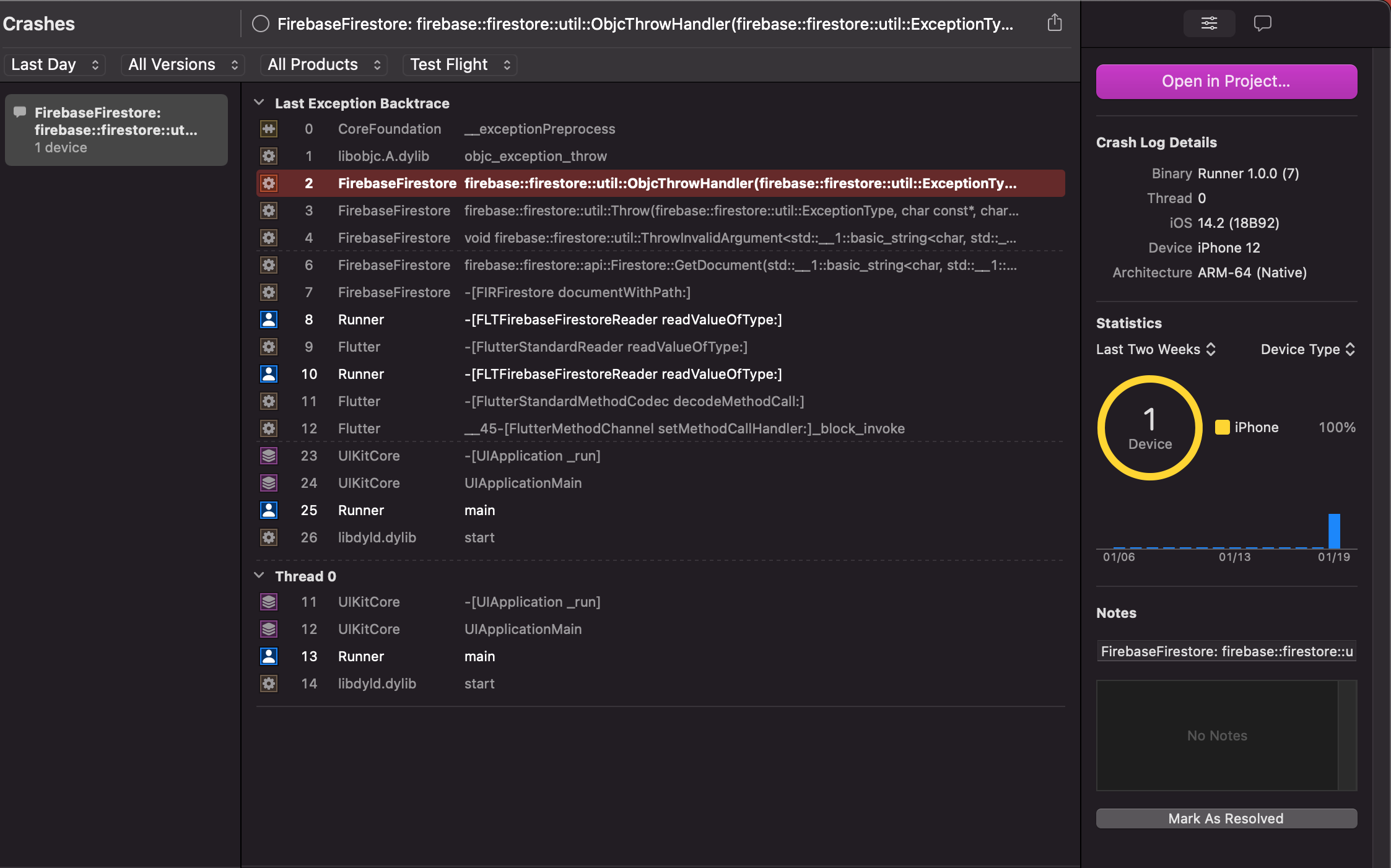 Below is the crash report that I opened in XCode but I do not understand the reason exactly what's happening.