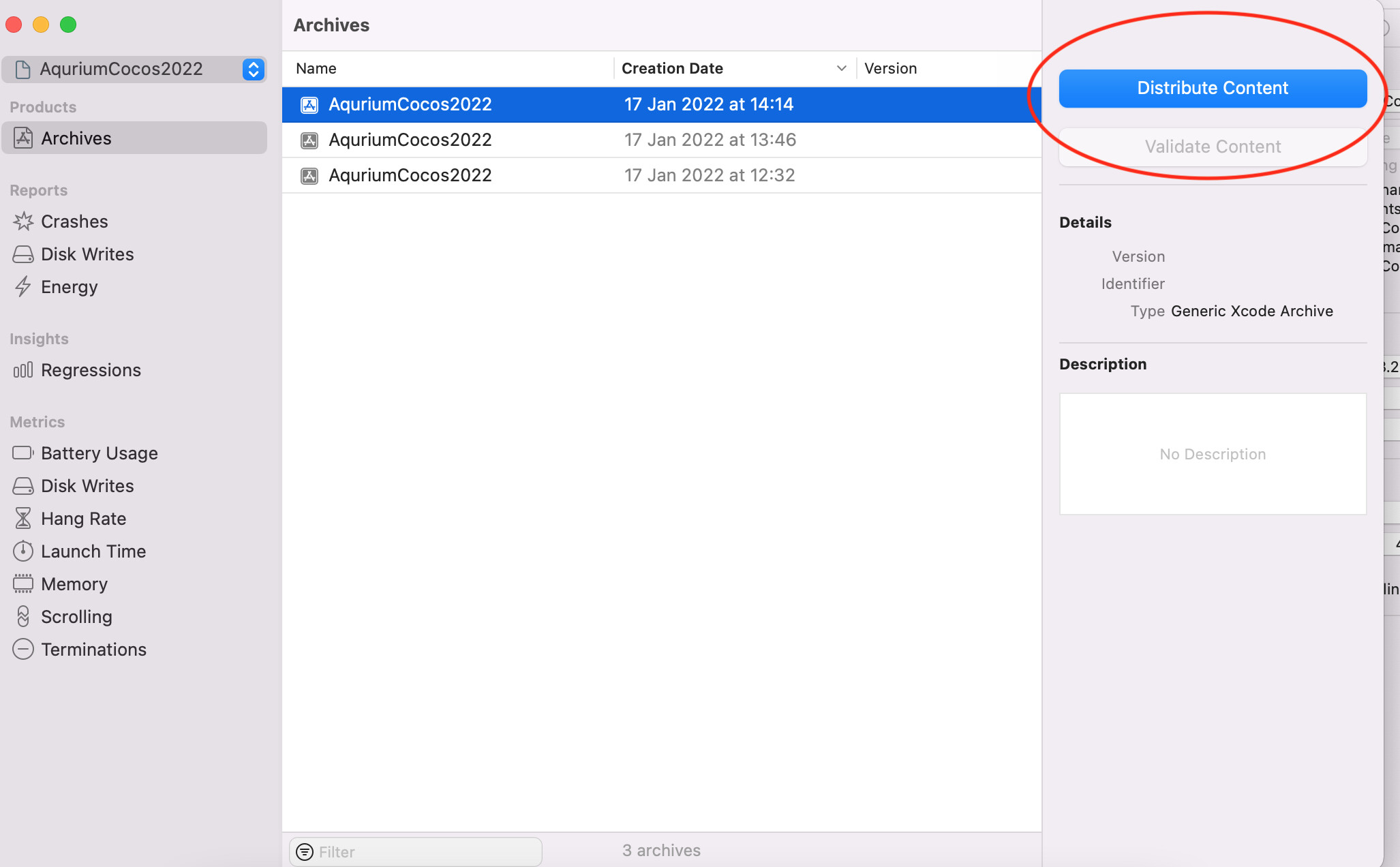 My game can not publish to Itunes Connect in Xcode because only show "Distribution Content" after click “Product” → “Archive”.