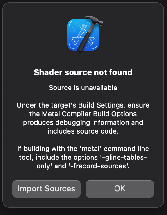 After capturing several metal frames of my IOS games which I packaged IPA file from UE4, I fail to get the shader source as before. The following msg box come across.