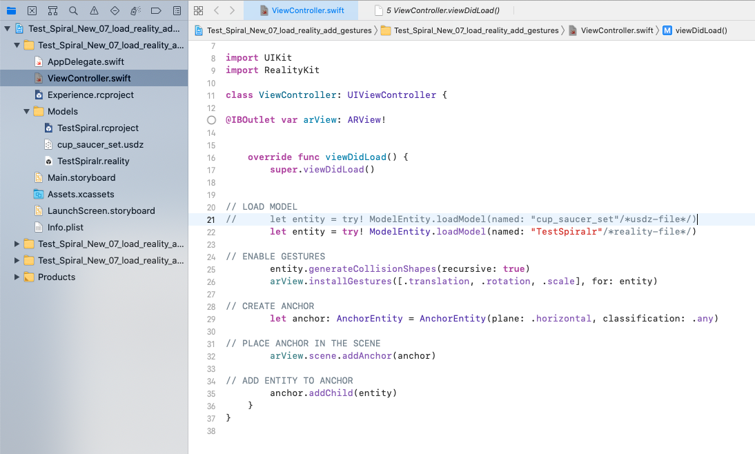 let entity = try! ModelEntity.loadModel(named: "TestSpiralr"/*reality-file*/)