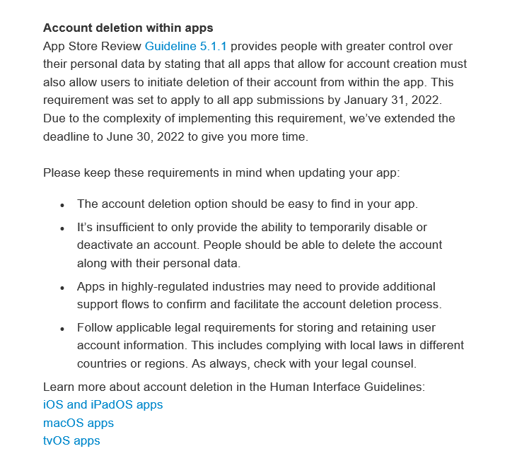 Now in my app, the login is done directly on a third IdP, so I wanted to understand if the issue of user cancellation falls into this case or not, since as I said it is a user on a third IdP (ex Google, Microsoft, Private IdP etc.), and therefore the rule only applies to those apps that allow registration directly within it and not on an external IdP. I hope I was clear.