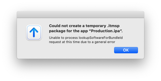 "Unable to process lookupSoftwareForBundleId request at this time due to a general error (1079)"