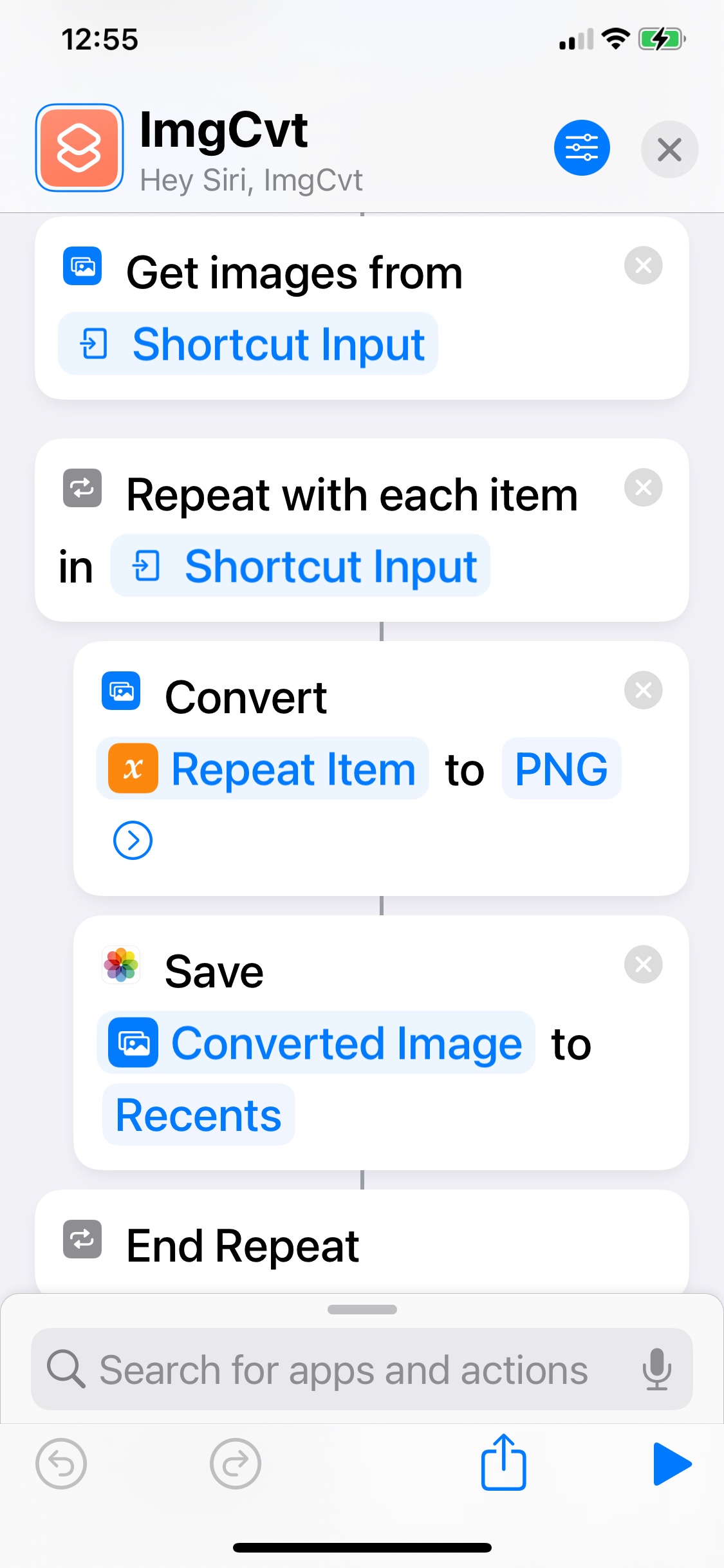 I've made a shortcut to convert an image from native format to png. The shortcut works as advertised for photos, but not for screenshots. For instance, a screenshot of resolution (1125x2436), when converted to png/jpg becomes 360x780)