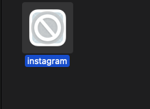 So I check the path and instagram.app is there. So the file exists however, the app has this cross logo on it and when I double click it gives me an error saying "You can't open the application "instagram" because it may be damaged or incomplete.