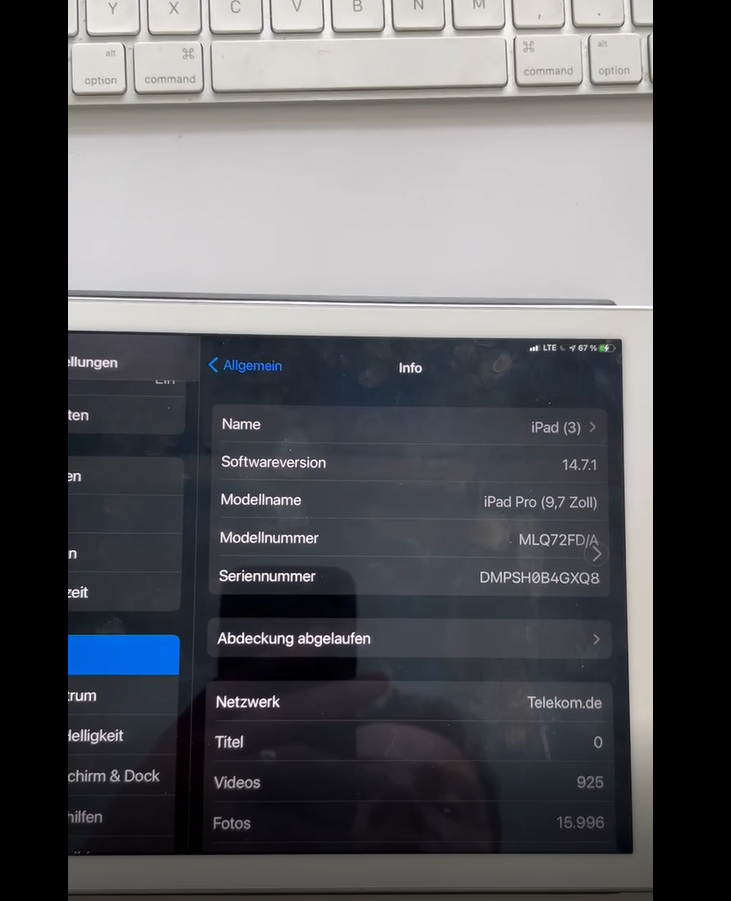I will attach some screenshots, that depict the mentioned problems and the device information.