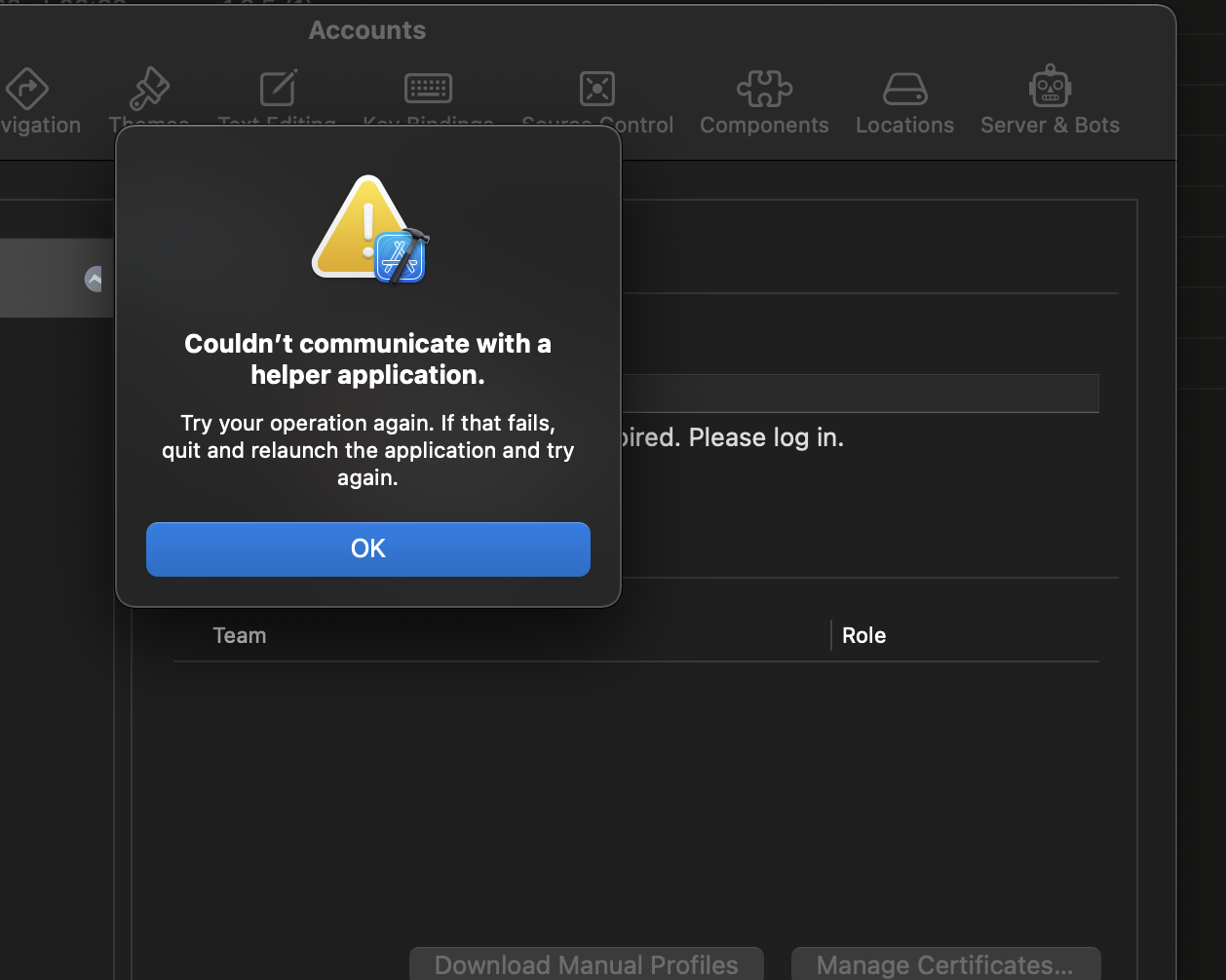 I cannot login back to my apple id in Xcode distribution panel. It says that My session expired and I should log in but it's stuck on this screen. Kindly assist.