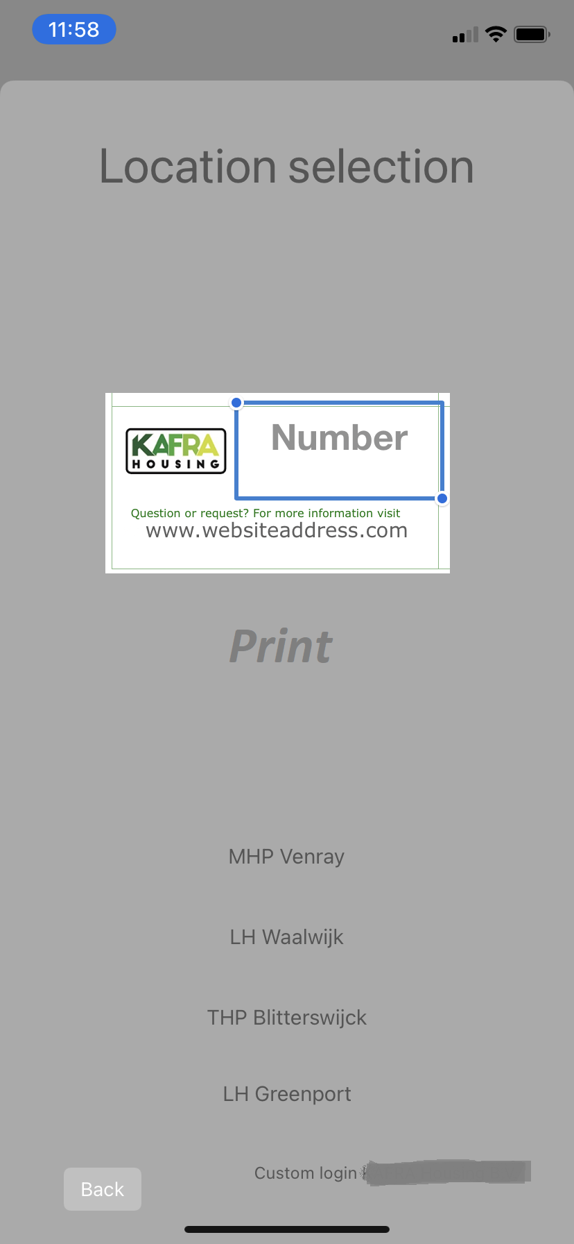 How can I make my NUMBERS label printable in my app? The number field should be aditable only.