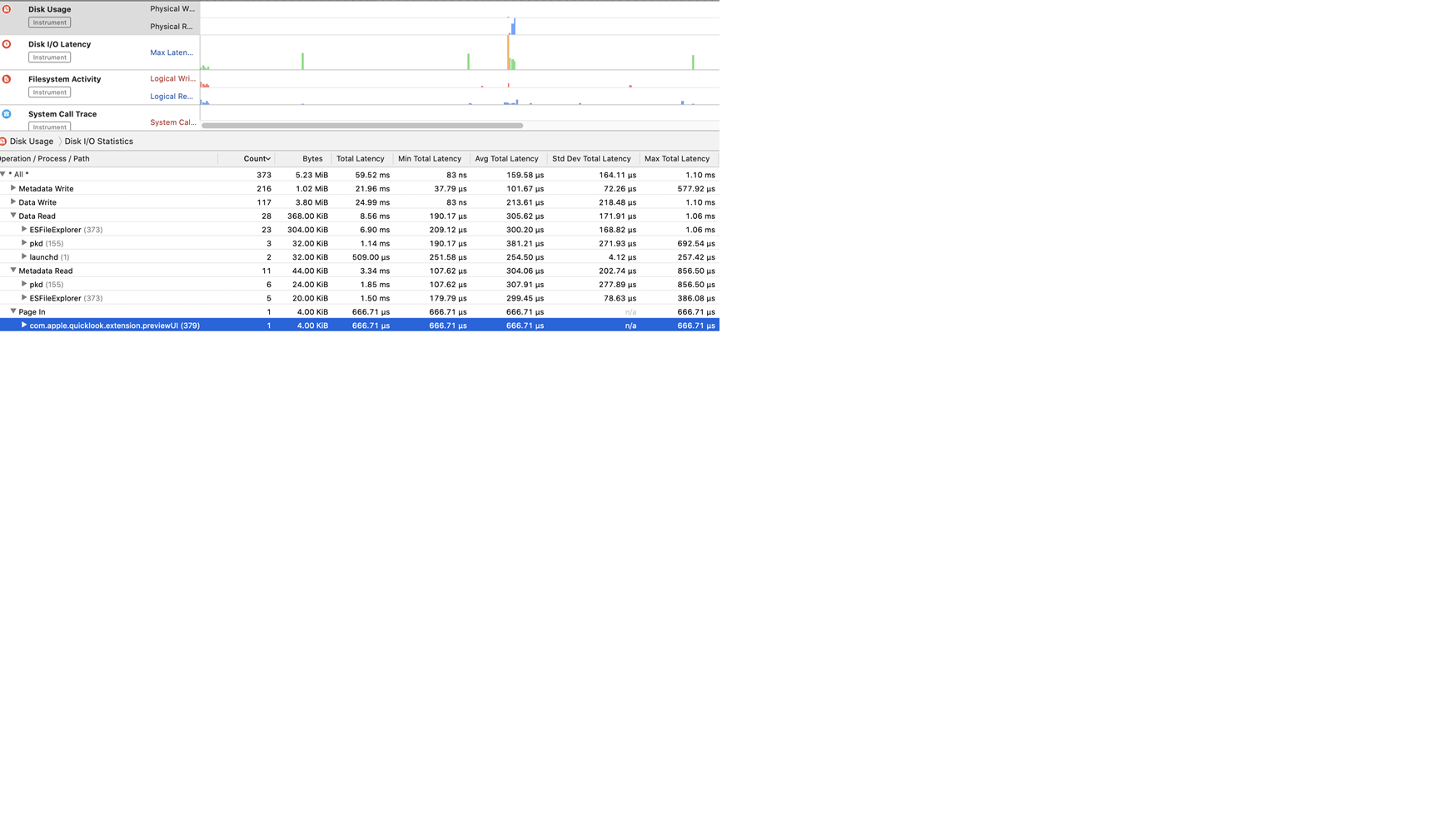 - In "Disk Usage", it shows that there are 4KB "Page In" operations. (Please refer to P1.png attached)