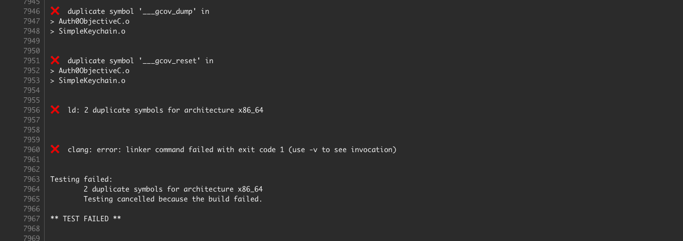 Added a new swift package, Auth0, to project and receive duplicate symbol error for gcov commands during circleCI build of integration tests. How do I manually turn on/off code coverage so there's no duplication going on in xcodeproj?