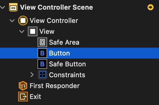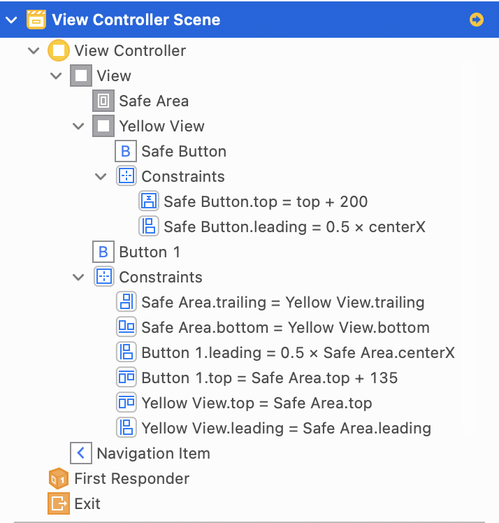 I would have expected the button aligned to the Safe Area to be shifted to the right as the Safe Area's leading edge is shifted to the right from the one of the Superview. I'm probably missing something but can't quite understand what is going on here.
