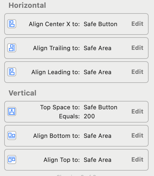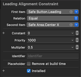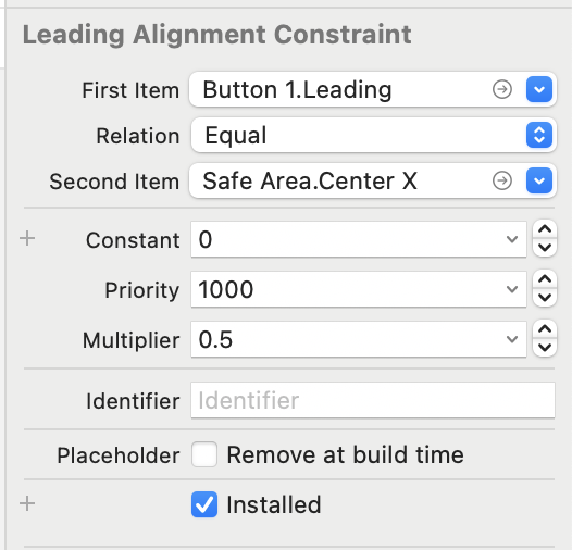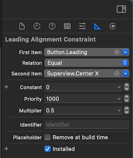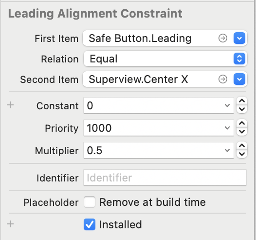 In Interface Builder, setting the constraints for a UI element (let's say a button) doesn't change if I make the aligment proportional to the Safe Area or proportional to the Superview. I have a button which I set its horizontal alignment to be: