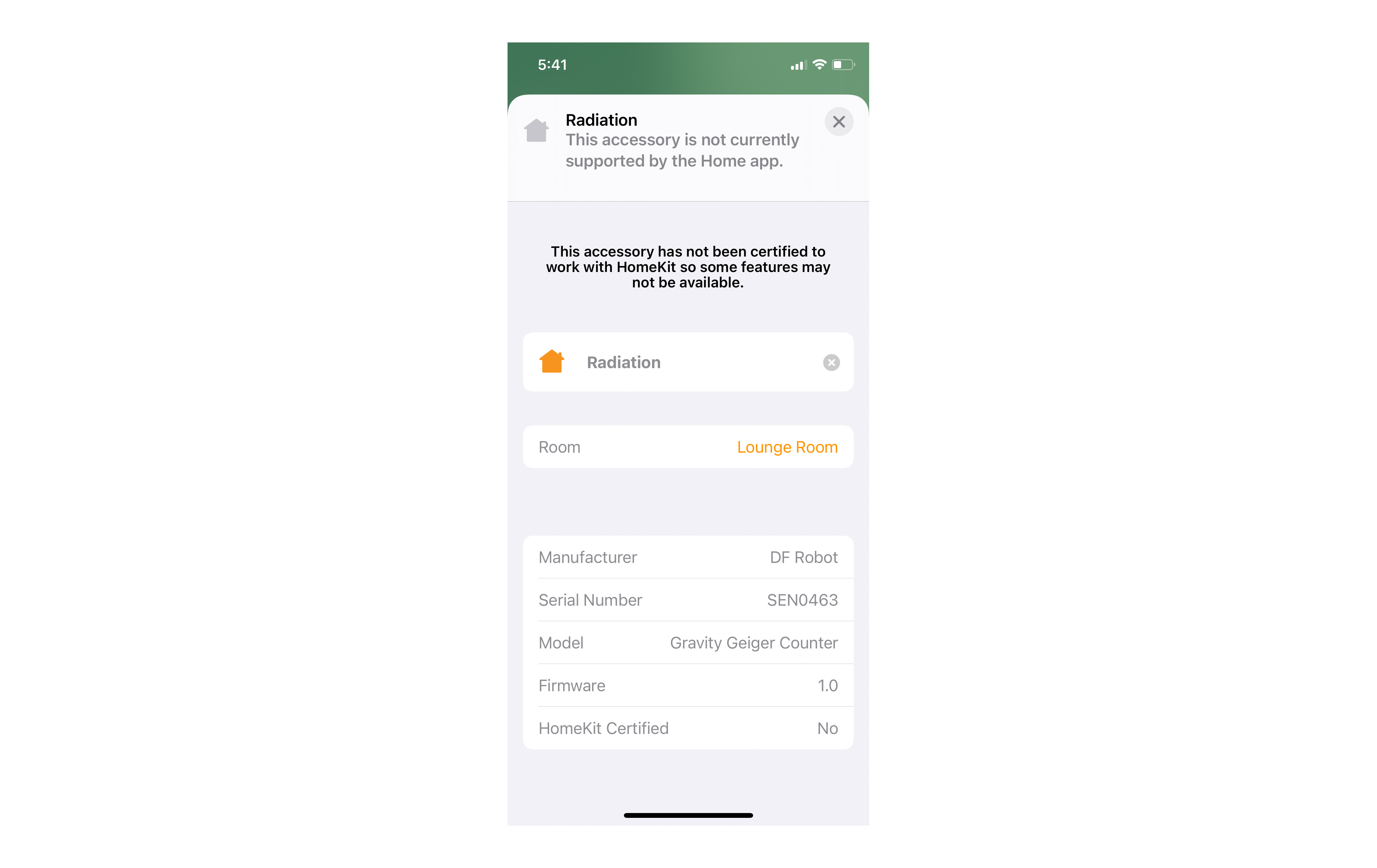 Result: I can add the Accessory to the Apple Home app, but it reports it as Not Supported.