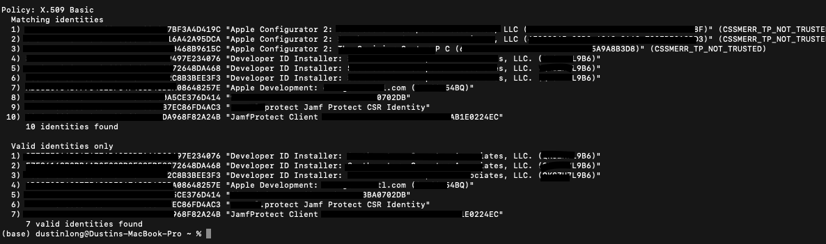 % security find-identity