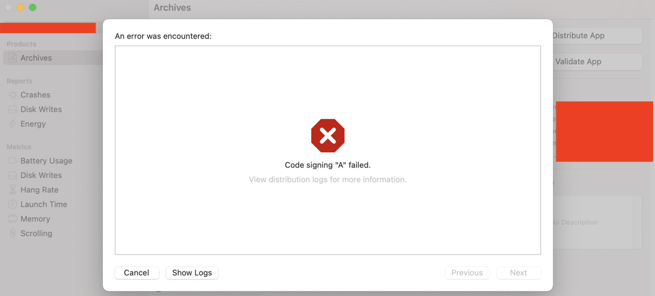 Then started package building. For this first archived the app. Then when I tried to notarize the archive, it failed.