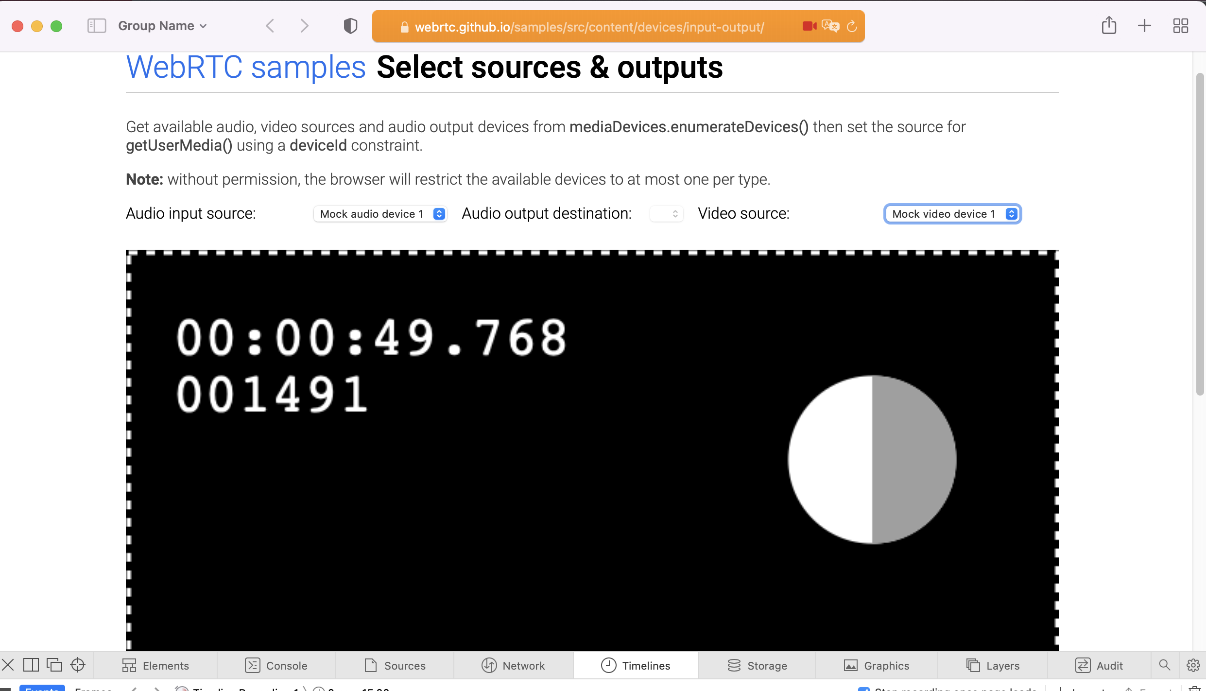 Reference : WebRTC samples link: https://webrtc.github.io/samples/src/content/devices/input-output/