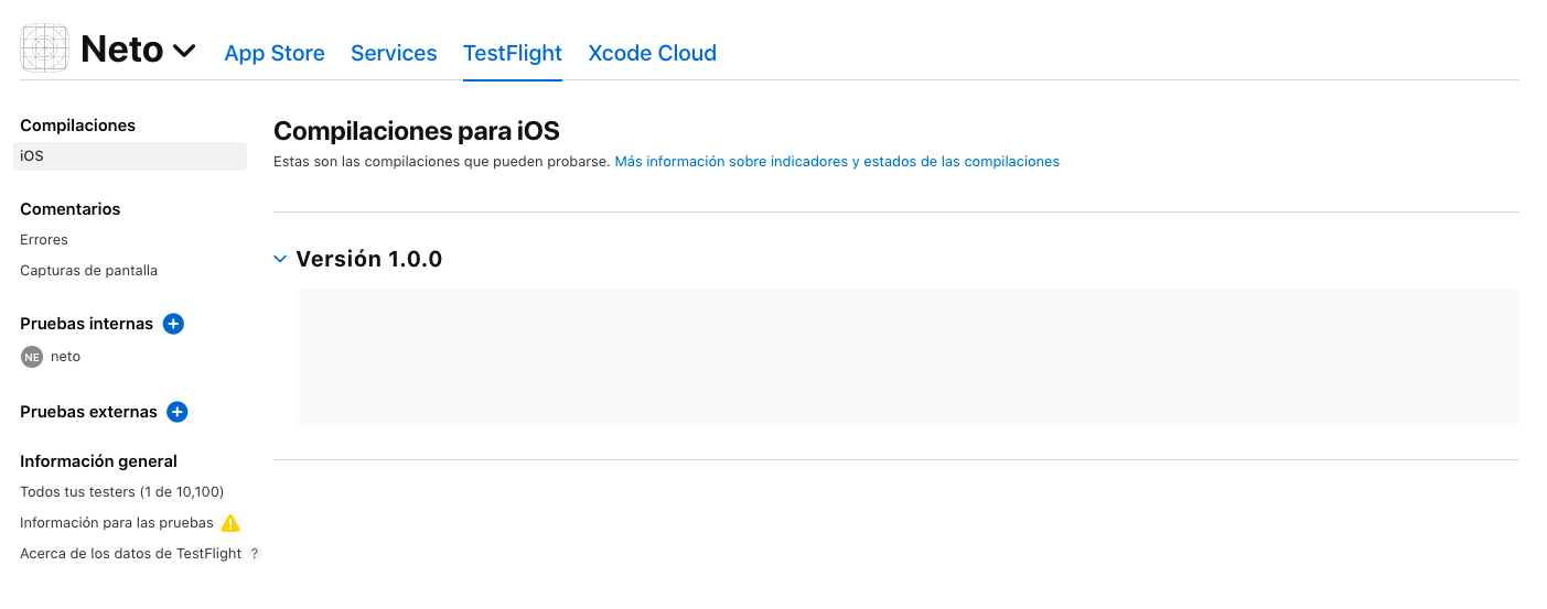 I created a new app in the App Store and when i upload a new build it doesnt appear in the testFlight tab (see image). But when i tried to upload the same bundle it shows me an error that a bundle was allready uploaded.